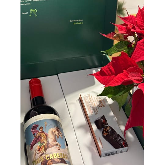 Луксозна Подаръчна Кутия El Gastro - Червено вино Tres Cabesas и Torrons Vicence