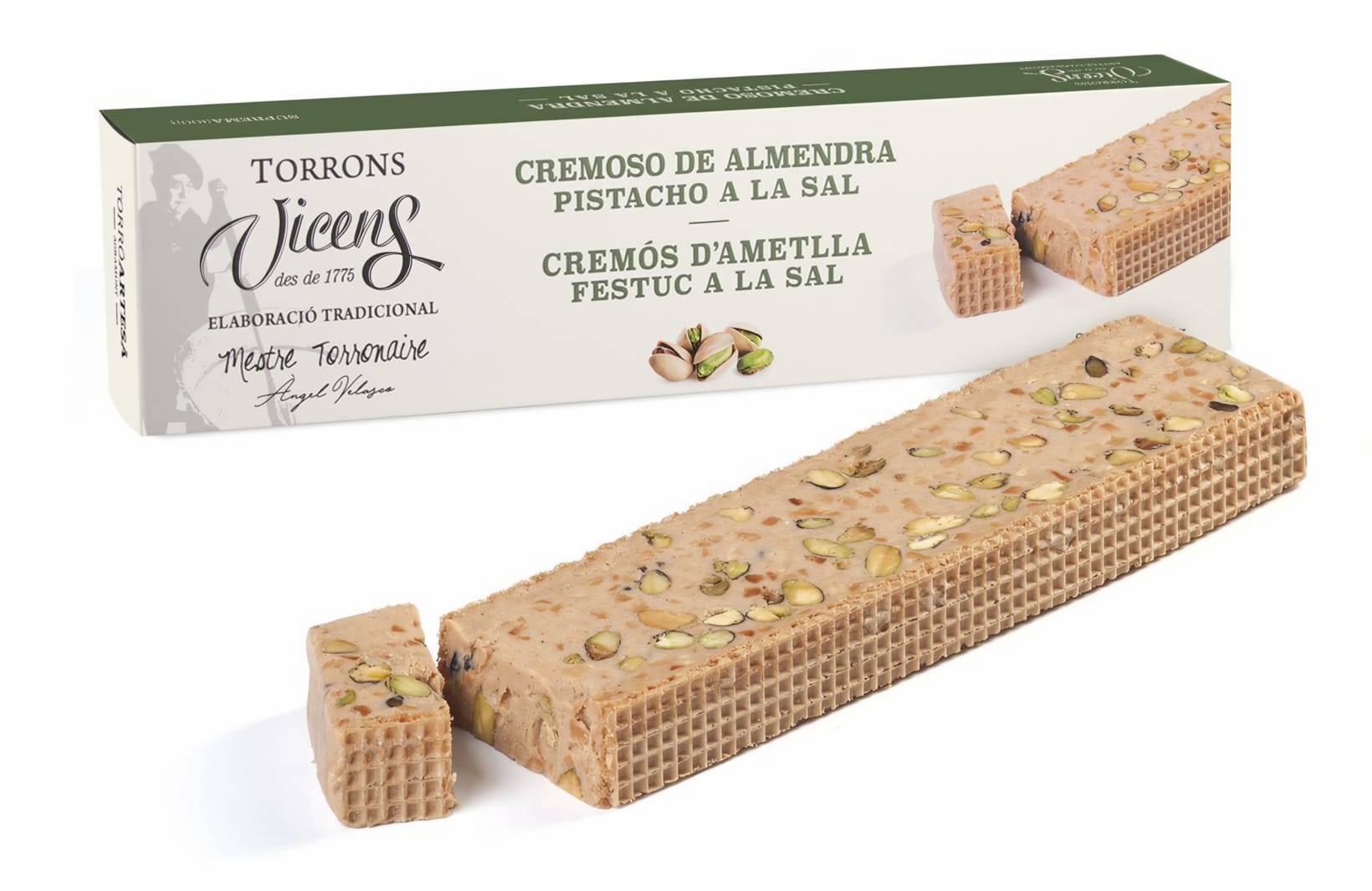 Селектирани бадеми (26,1%), захар, солени шамфъстъци (13,4%) (шамфъстъци, сол, чили), селектирани лешници, какаово масло, пълномаслено мляко на прах, ванилия (пшенично брашно, емулгатор: соев лецитин, набухвател: натриев бикарбонат, овесени фибри, сол), сол 0,03%, ароматизант ванилия.